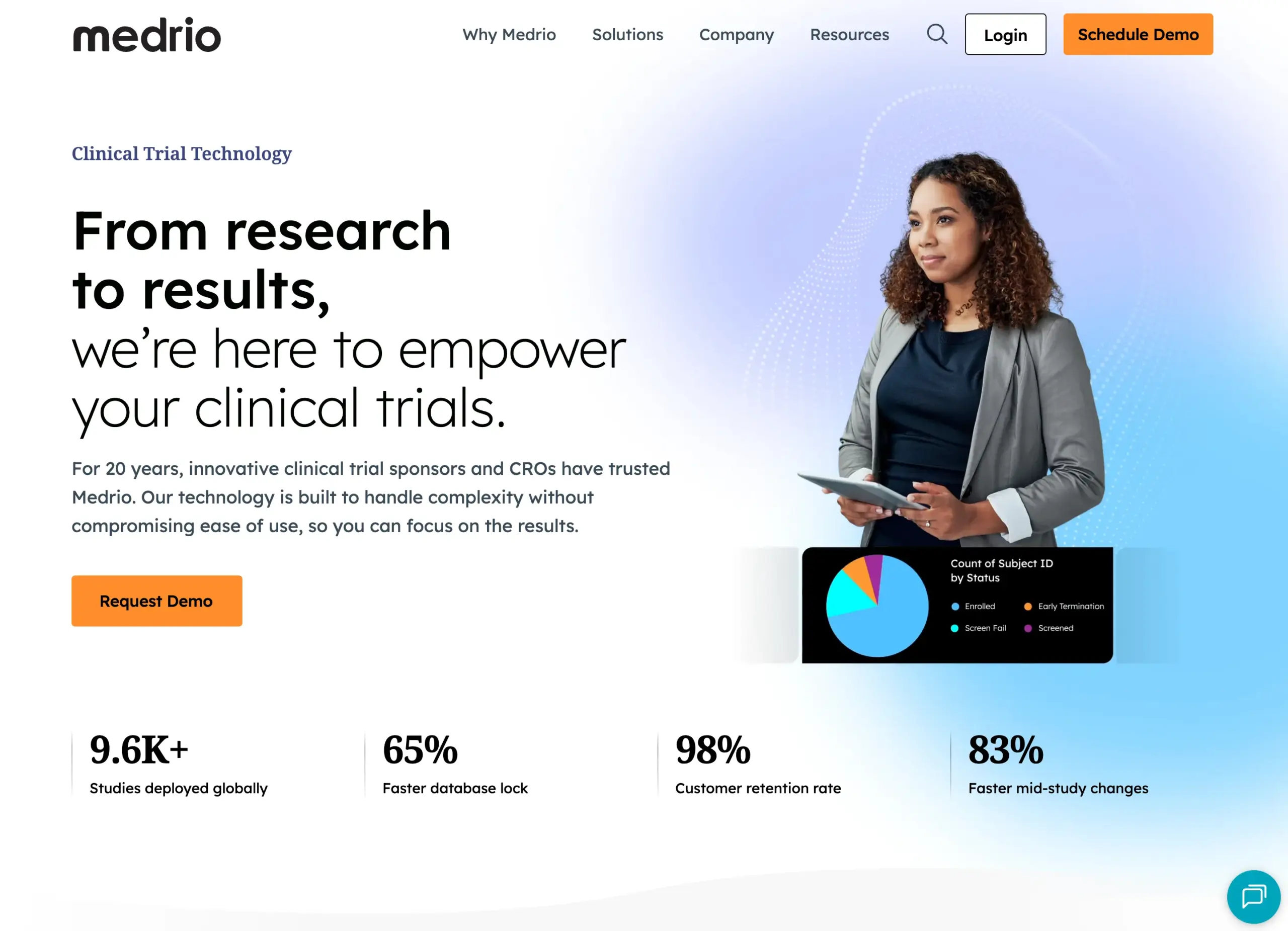 Medrio is a global SaaS company providing electronic data capture (EDC) solutions for clinical research. As the sole designer and developer supporting the company’s digital presence, the goal was to create and maintain a cohesive, professional web and marketing ecosystem that could scale alongside a rapidly growing organization.
