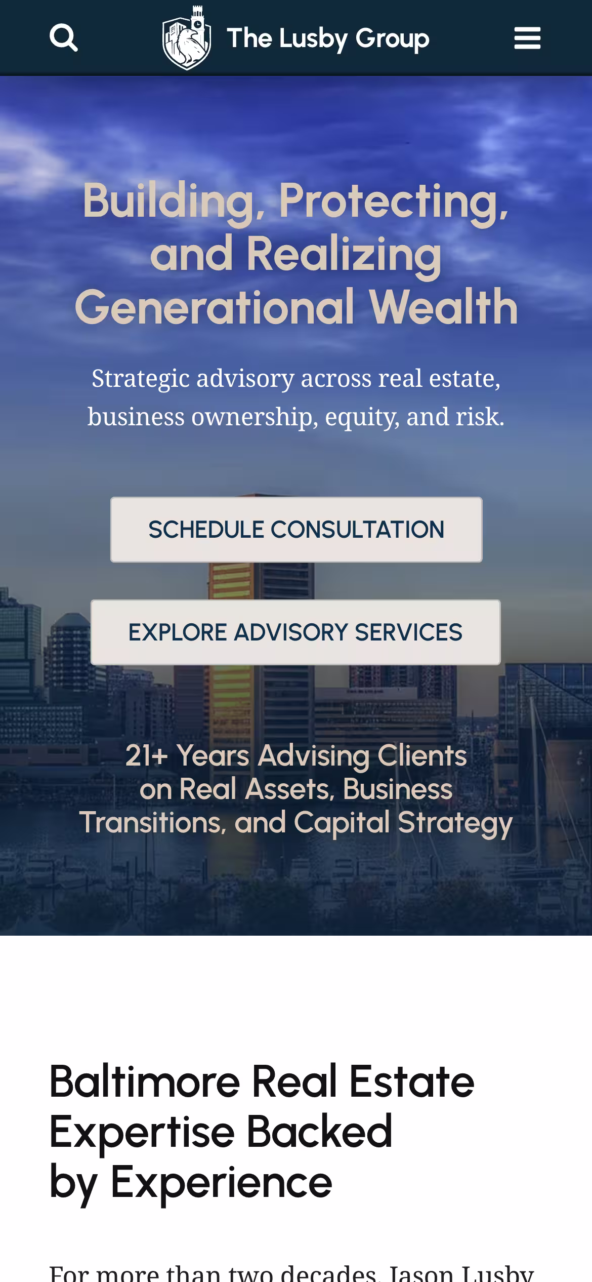 The Lusby Group website was designed and developed as a high-end, performance-focused platform to support a growing real estate business operating across residential, commercial, and business brokerage services in the Baltimore market. The primary objective was to create a site that felt polished and professional while remaining fast, scalable, and easy to maintain over time.
